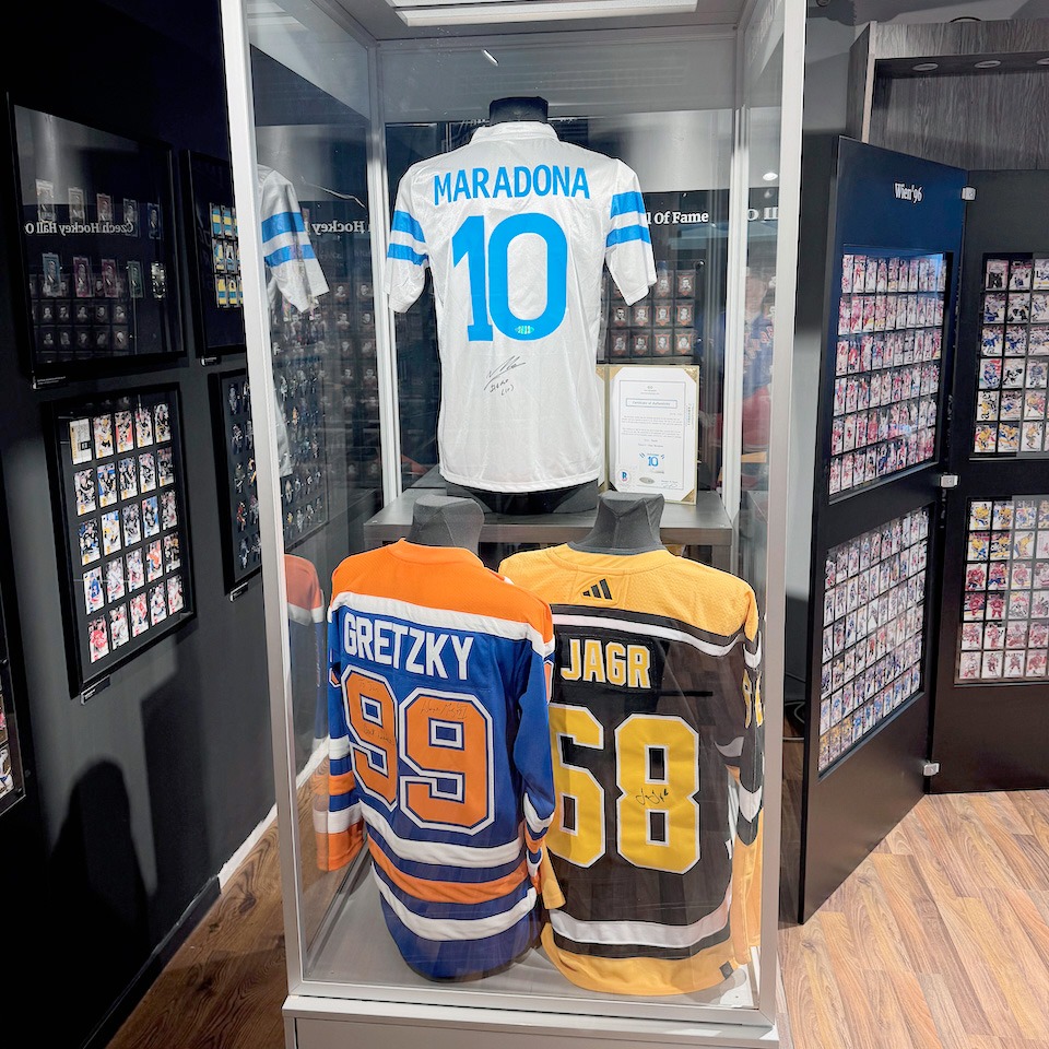 Admire signed jerseys of sports legends like Diego Maradona and Wayne Gretzky, along with other rare memorabilia pieces — perfect for taking that group photo during your stag weekend in Prague.